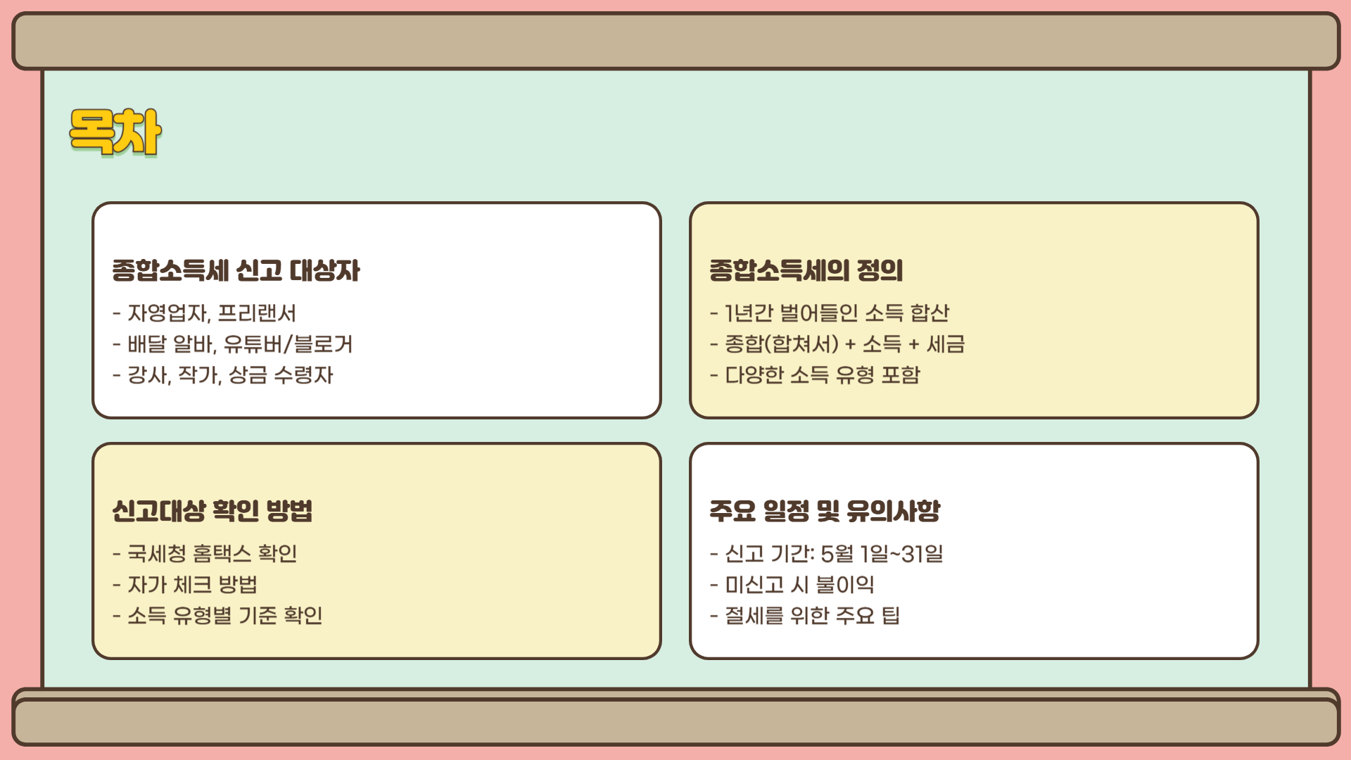혹시 올해도 '나는 해당사항 없겠지'라고 생각하고 계신가요? 지금부터 함께 확인해보시죠. 놓치면 불이익이 따르는 종합소득세, 미리 준비하면 훨씬 수월해집니다.